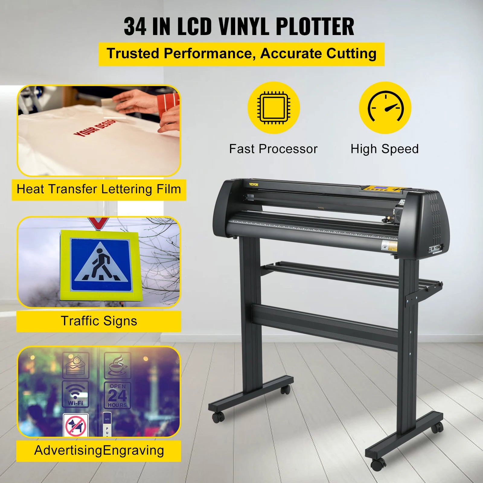 - Versatilitate în format mare: Lățimea de tăiere de 34 inci este ideală pentru semne, autocolante, bannere și grafice pentru vehicule.