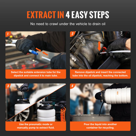 Acest extractor simplifică schimbările de ulei și întreținerea fluidelor, reducând riscul de vărsare și economisind timp în garajele de acasă și atelierele profesionale. Modul său pneumatic oferă o extracție mai rapidă pentru fluxuri de lucru aglomerate, în timp ce controlul manual îți permite să finalizezi lucrările delicate cu precizie. Perfect pentru mecanicii DIY, întreținerea flotelor și atelierele mici de servicii, susținut de o garanție de satisfacție.