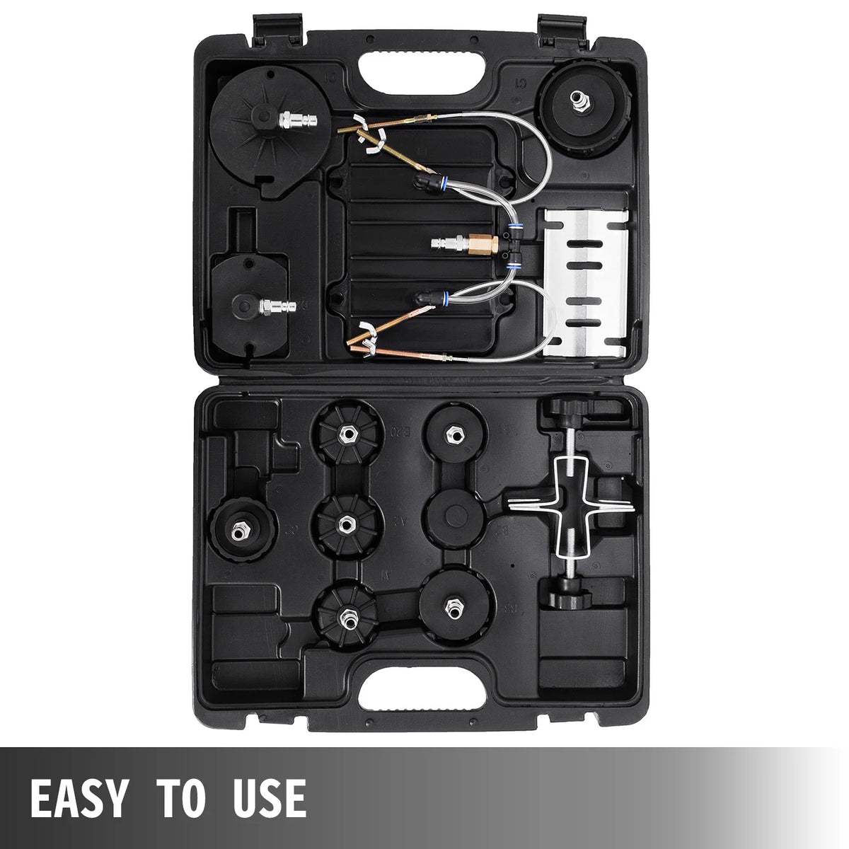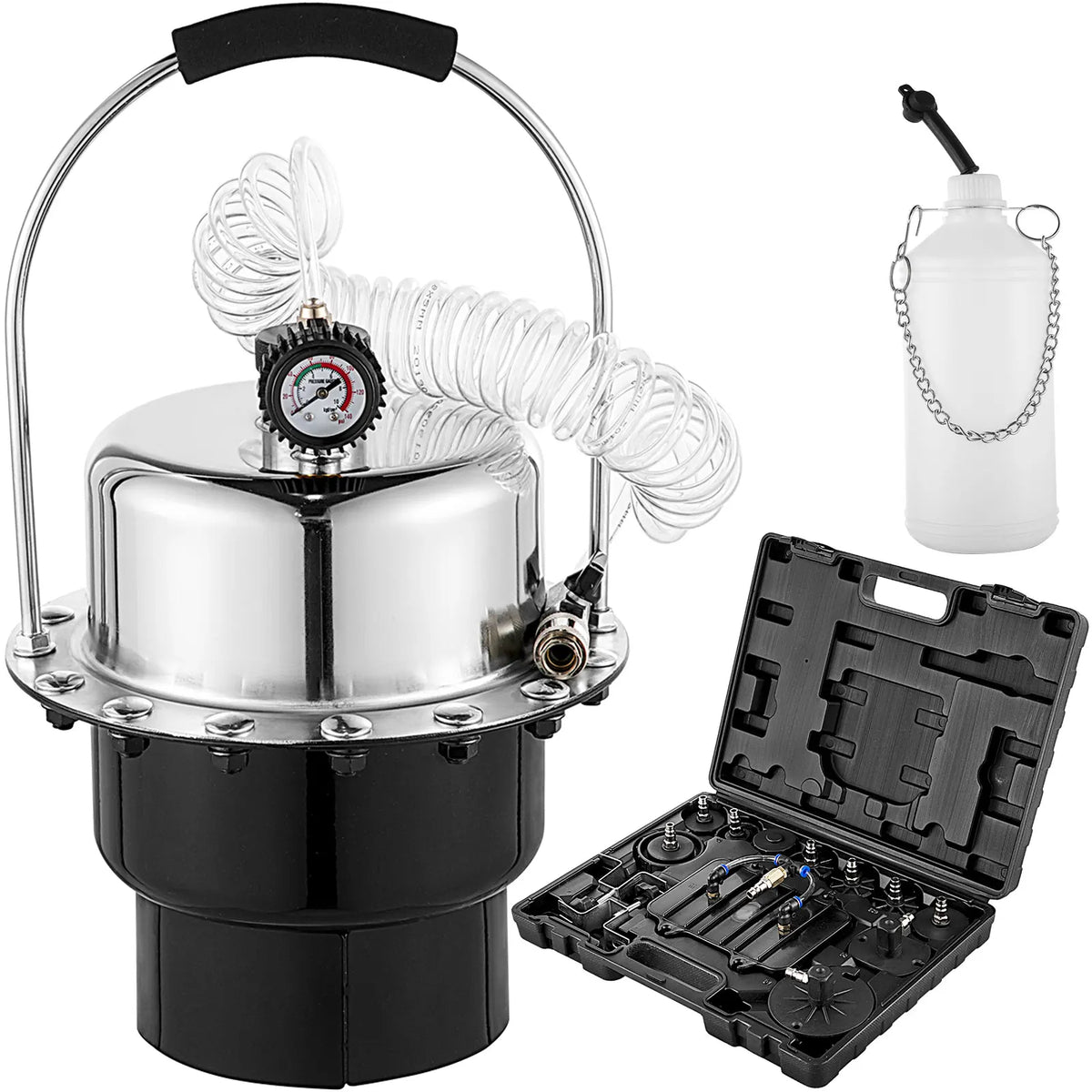 Descoperiți Kitul Pneumatic pentru Sângerarea Frânelor cu Sistem de Supapă pentru Ambreiaj — o soluție fiabilă, alimentată cu aer, pentru sângerarea frânelor hidraulice auto și a ambreiajelor hidraulice pentru vehicule mari. Acest kit utilizează un dispozitiv de stocare a gazului încorporat, acționat de aer comprimat, astfel încât puteți efectua mai multe schimburi de ulei dintr-o singură încărcare. Manometrul reglabil de presiune de lucru vă permite să adaptați procesul de sângerare pentru fiecare vehicul, îmbunătățind siguranța și eficiența. Fabricat din oțel durabil, cu un rezervor de 5L, păstrează lichidul la îndemână și reduce riscul de a rămâne fără lichid în timpul sângerării sau schimbului de lichid.