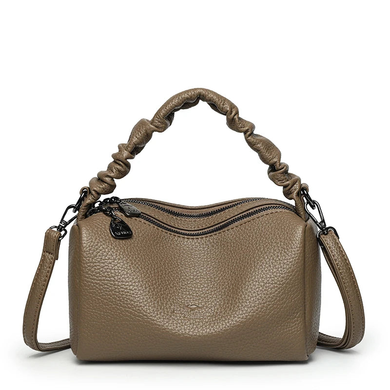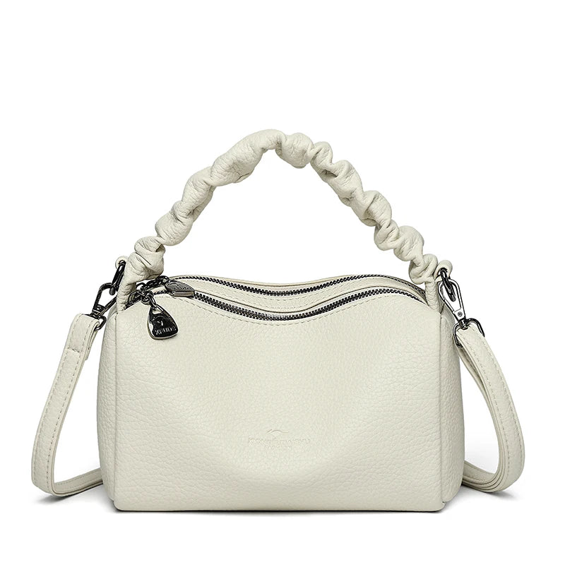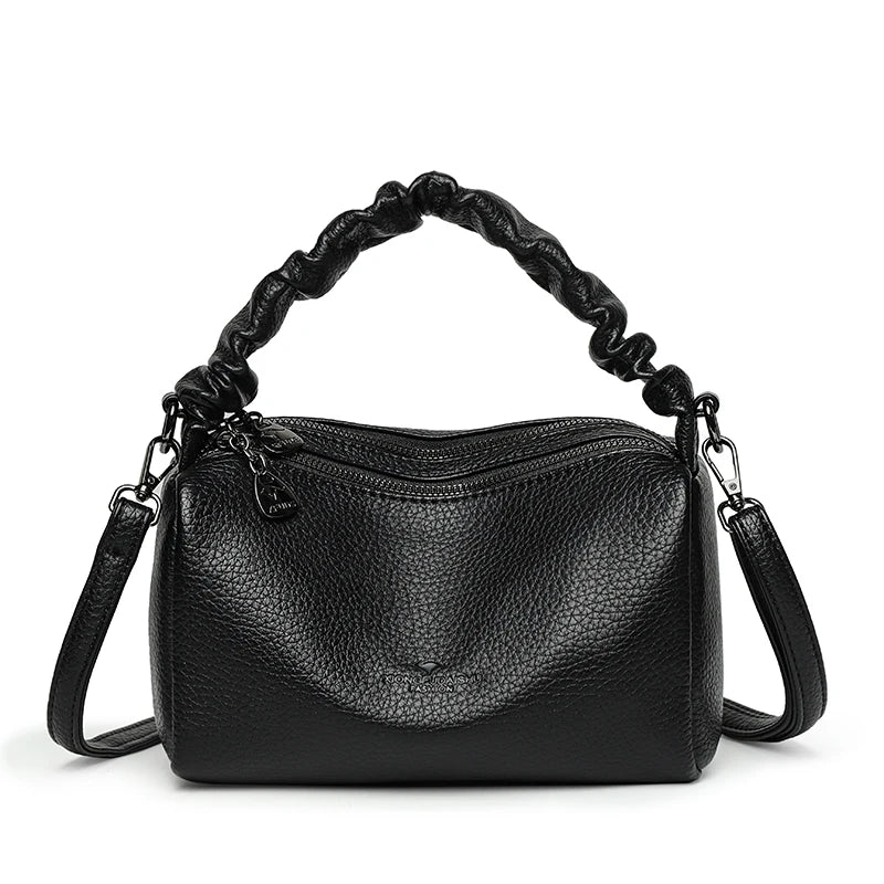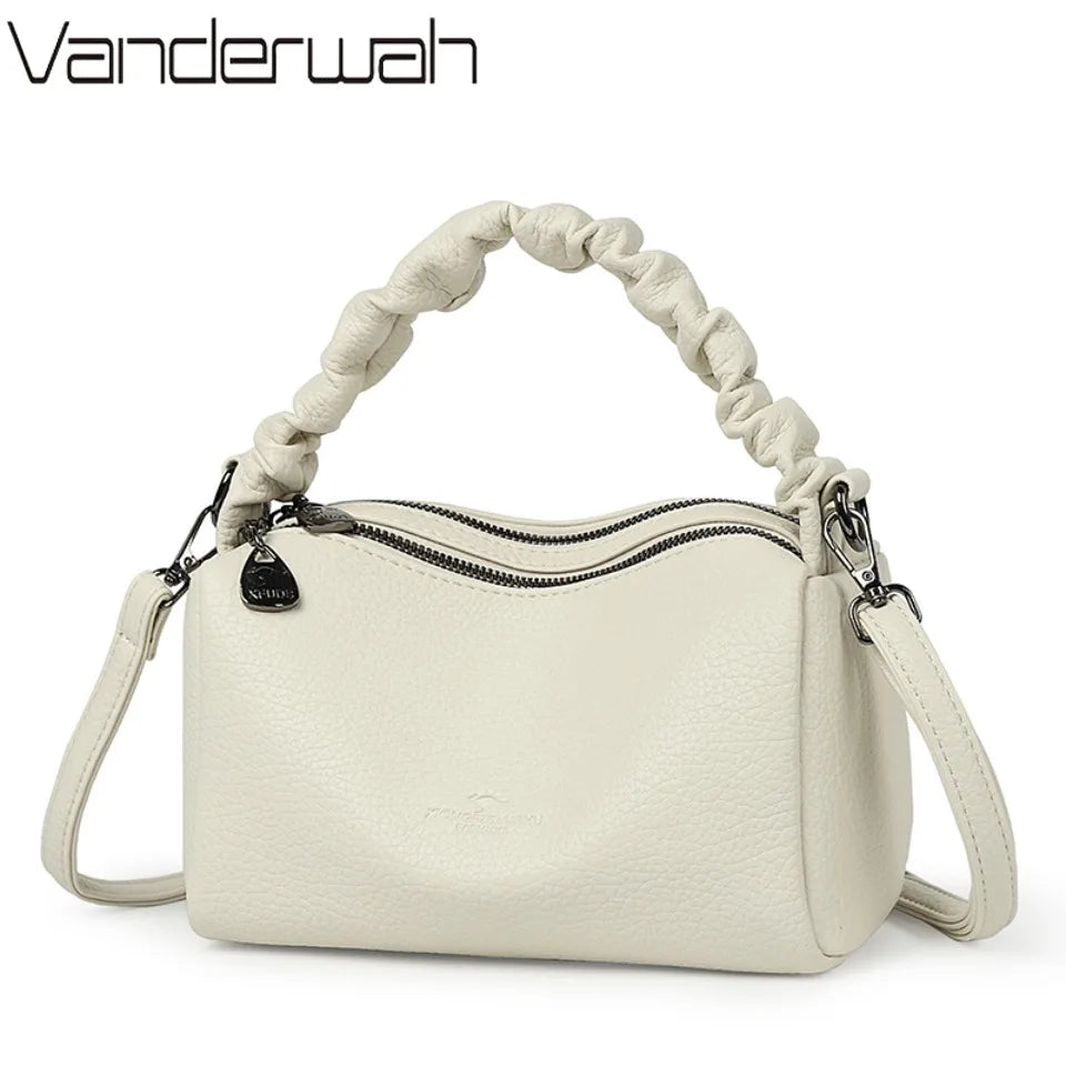 Geantă mică de umăr din piele PU cu două straturi pentru femei, poșetă de lux crossbody cu buzunare interioare