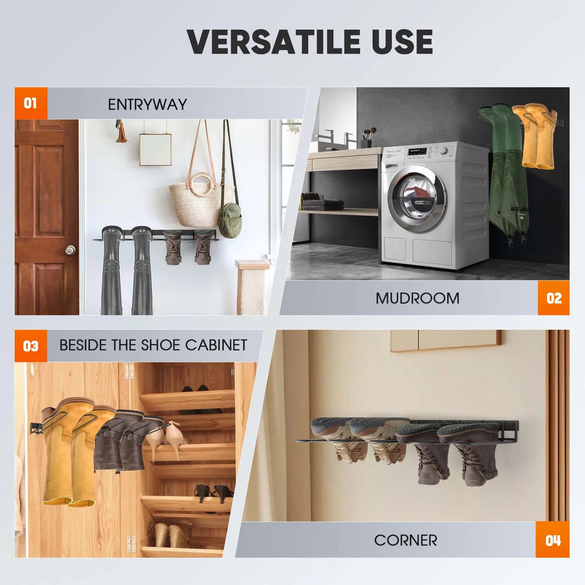 Suport pentru cizme de cauciuc montat pe perete pentru 4 perechi, suport metalic pentru interior