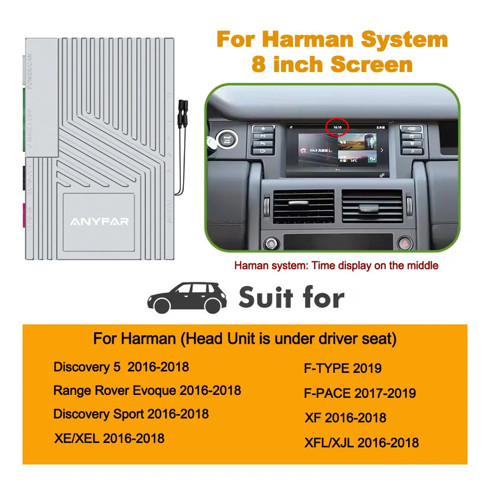 Îmbunătățește-ți Land Rover Discovery 4 cu cutia decodor Wireless CarPlay Android Auto de la ANYFAR și bucură-te de o adevărată senzație OEM pe tabloul tău de bord existent. Acest kit de retrofit adaugă funcționalități CarPlay și Android Auto, păstrând în același timp display-ul și controalele originale Land Rover, inclusiv controlerul rotativ și butoanele de pe volan, pentru o experiență integrată, fără cusur.