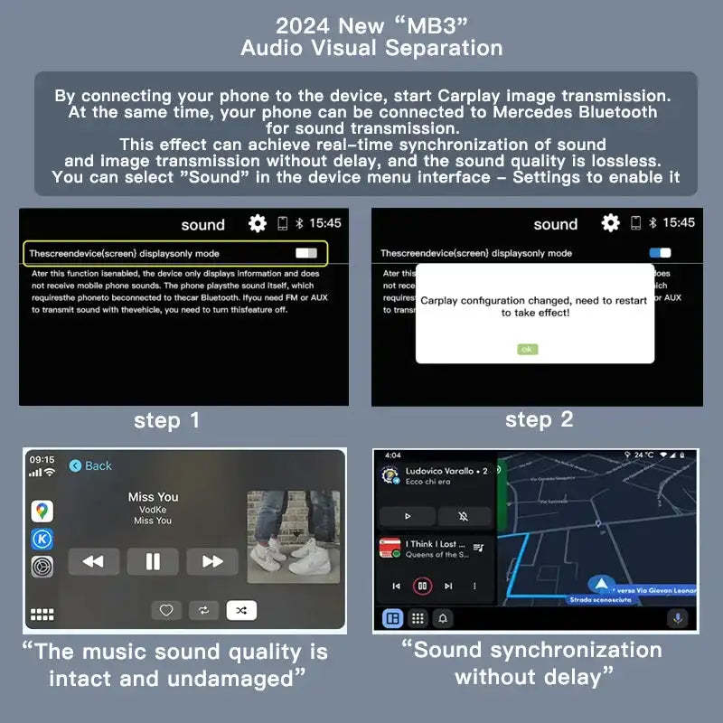 - Model/Compatibilitate: Modul Wireless CarPlay & Android Auto pentru Mercedes-Benz cu priză Becker; NTG4.5 Becker Box