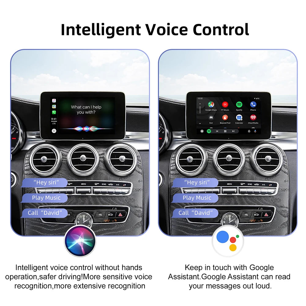 Kit de retrofit Wireless CarPlay Android Auto pentru Mercedes Benz W204 W176 W246 este o cutie de decodare de ultimă generație care îmbunătățește unitatea principală NTG a Mercedes-Benz cu capabilități moderne CarPlay și Android Auto, păstrând în același timp aspectul și senzația OEM. Refolosește afișajul existent al bordului, controlerul rotativ și comenzile de pe volan pentru a oferi o experiență fără cusur, asemănătoare cu cea din fabrică.