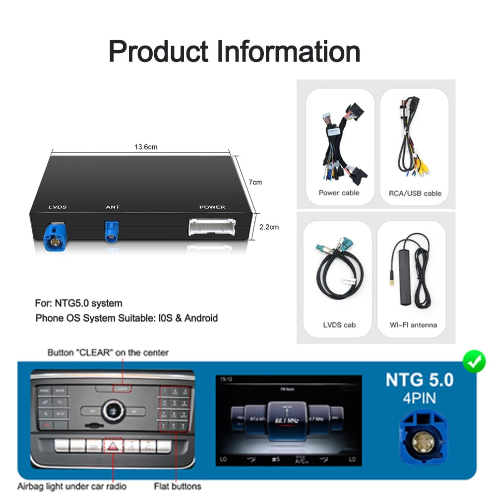 - Modul interfață video CarPlay pentru unitățile principale Mercedes Benz NTG5.0/NTG5.1