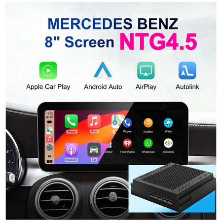 Transformați cockpitul Mercedes-Benz NTG4.5 cu adaptorul NTG4.5 Wireless CarPlay—o soluție ușoară, plug-and-play care adaugă CarPlay wireless și Android Auto la sistemul dumneavoastră de fabrică. Proiectat pentru modelele Mercedes care rulează NTG 4.5 cu un port Harman Becker (A, B, C, E, CLA, GLK, ML, SLD), acest adaptor oferă integrare modernă a smartphone-ului fără a înlocui unitatea principală. Transmite CarPlay wireless, suportă Android Auto, Mirror Link și unități flash USB, și se conectează rapid prin Wi‑Fi și Bluetooth 5.0 încorporate de 2.4G/5.8G.