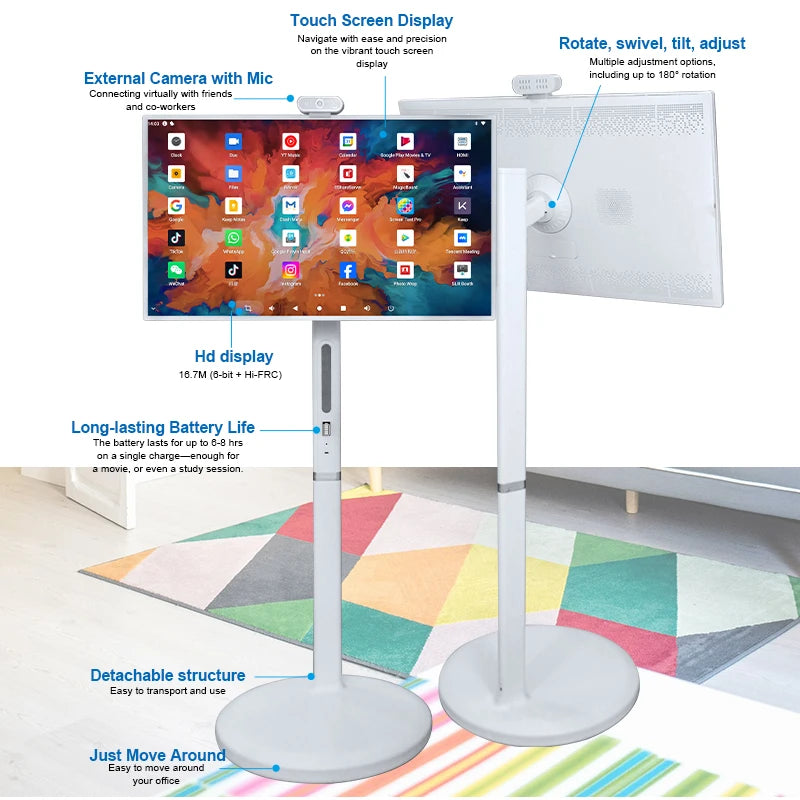 Întâlnește Monitorul Wireless Smart cu Ecran Tactil de 32 Inch în 1080P Android — un display versatil construit pentru petreceri, festivaluri, evenimente, nunți, închirieri și atât setări interioare, cât și exterioare. Ecranul său generos de 32 de inci oferă imagini clare 1080P cu control tactil intuitiv, ajutându-te să angajezi audiențele și să desfășori prezentări interactive cu ușurință.
