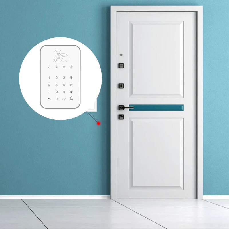 K10 Wireless Touch Keyboard Lock – RFID Passcode Arm Disarm: O tastatură tactilă wireless compactă, cu consum redus de energie, care securizează și controlează armarea/dezarmarea gazdei de alarmă prin cod de acces sau RFID. Ideală pentru controlul accesului rapid și fiabil în case, birouri și mici afaceri.