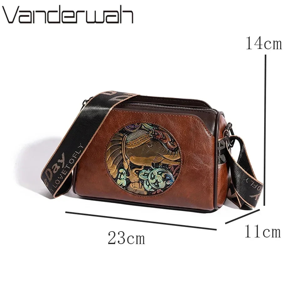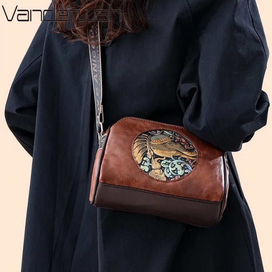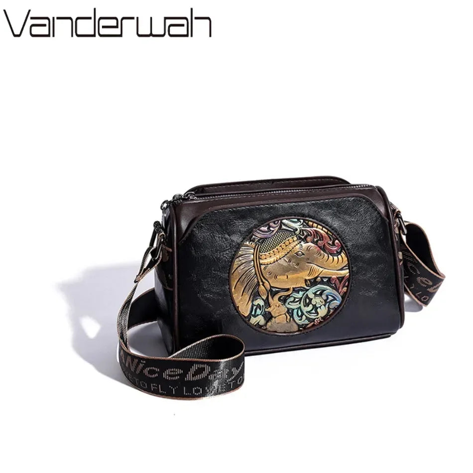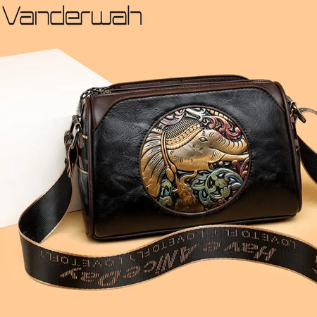 Geantă de umăr din piele brodată cu elefant pentru femei, geantă poștaș de înaltă calitate, pentru uz zilnic