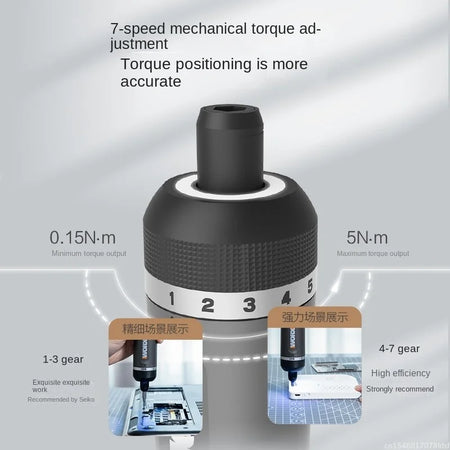 Întâlniți Youpin Worx WX242, un șurubelnit fără fir compact de 4V, proiectat pentru șuruburi rapide și precise în electronică, mobilă mică și proiecte DIY de zi cu zi. Cu o viteză de 320 rpm și un cuplu de până la 8 Nm, face față sarcinilor ușoare fără oboseală. Cu doar 320 g, mânerul se așează confortabil în mână pentru operare cu o singură mână, în timp ce un acumulator reîncărcabil USB-C și o capacitate de 2Ah te mențin pregătit pentru sesiuni mai lungi. Notă: Acest produs face parte din lanțul ecologic Youpin - este posibil să nu existe logo-ul Youpin pe ambalaj.