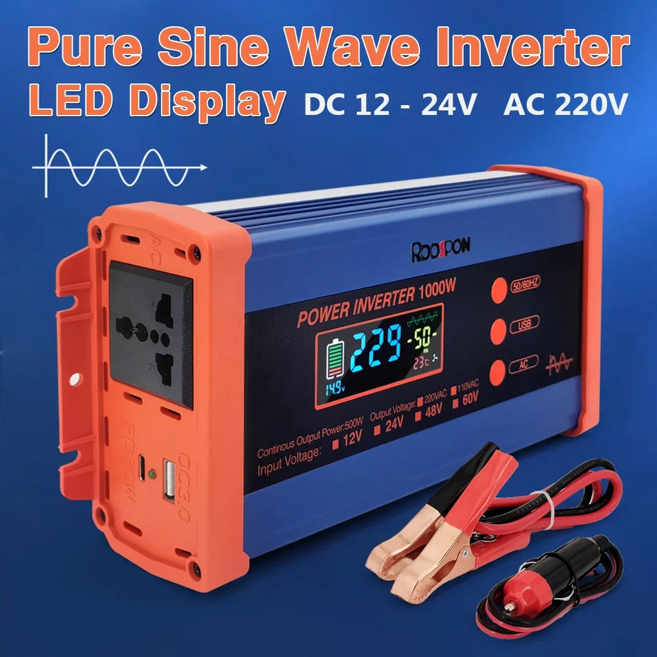 Портативный автомобильный инвертор DATOUBOSS 1200W-3000W с чистой синусоидой 12V-24V