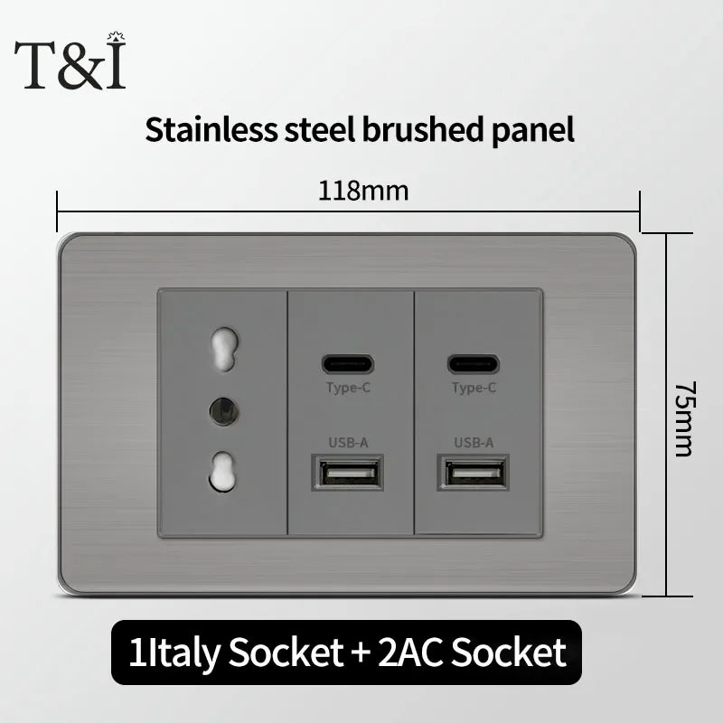 118 Серый Tuya Wifi Настенный Разъем – USB Type-C Матовая Отделка