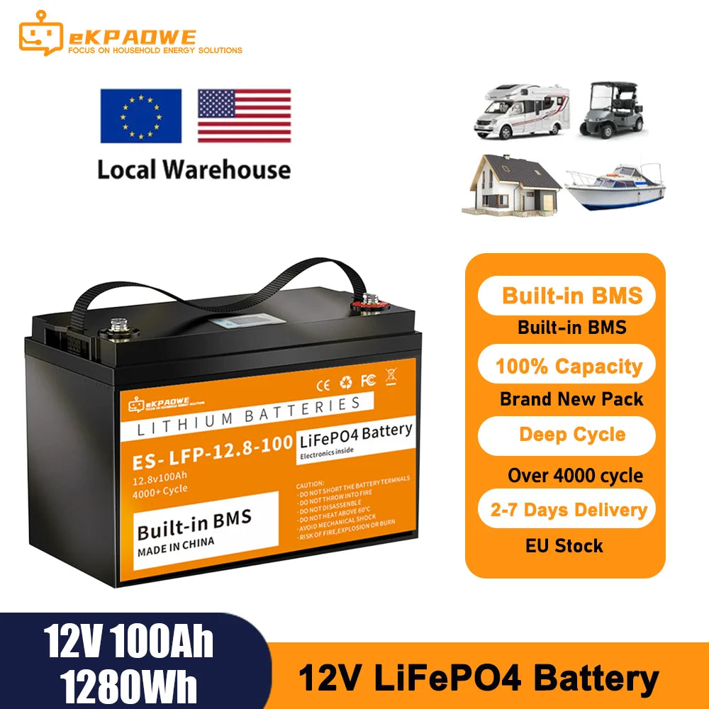 Испытайте надежную, высокопроизводительную мощность с 12V 100Ah LiFePO4 аккумулятором с встроенной BMS от EKPAOWE. Этот аккумулятор на 1280Wh предназначен для скутеров, уличных мотоциклов и солнечных установок, сочетая долгий срок службы, надежную безопасность и отсутствие обслуживания благодаря химии LiFePO4 и встроенной системе управления батареей (BMS).
