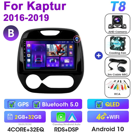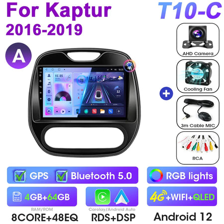Автомагнитола для Renault Kaptur и Captur 2016-2019, Android 12, CarPlay, 9 дюймов, сенсорный экран, GPS