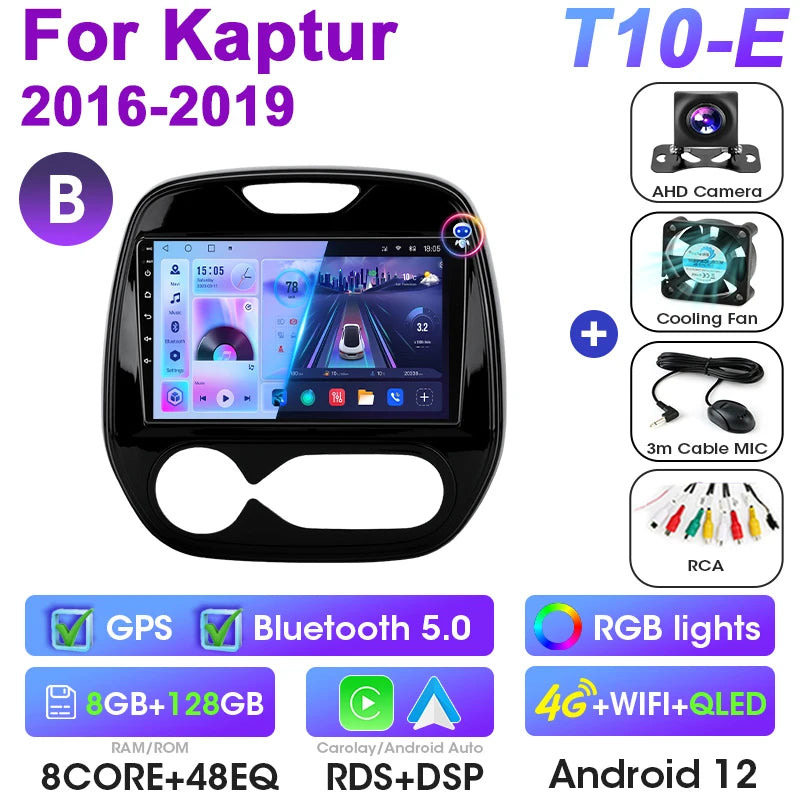Работая на Android 12 с восьмиядерным процессором T10 и до 128 ГБ памяти, эта головная станция обеспечивает плавную работу, быструю загрузку приложений и достаточно места для карт, музыки и видео. Поддерживает беспроводной CarPlay и проводной Android Auto (в зависимости от версии), а также функции DSP, голосовое управление, режим разделённого экрана и управление с рулевого колеса для настройки вашего автомобильного опыта. Разработана для моделей Renault Kaptur/Captur 2016–2019 годов, подходит для двойного DIN с 9" дисплеем и выходной мощностью 4x50 Вт для насыщенного и чистого звука.