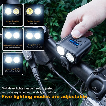 Передний велосипедный фонарь с двойным лучом ABS, перезаряжаемый, с 5 режимами, Type-C