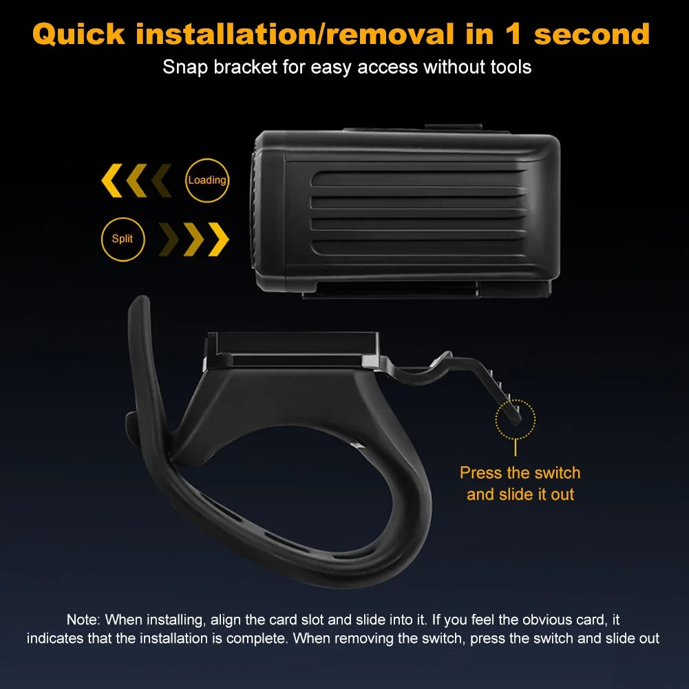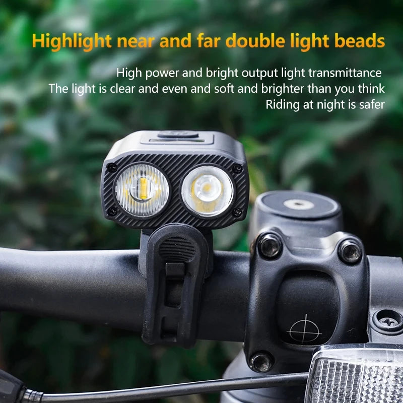 Технология двойного луча обеспечивает как дальность, так и покрытие: дальний луч помогает видеть далеко вперед, а широкоугольный луч освещает боковые и зоны проверки плеча для более безопасной навигации. Зарядка Type-C делает подзарядку быстрой и удобной, так что ваш свет всегда готов к использованию. В комплекте есть ремешок для быстрой установки без инструментов на руль, а лампа поддерживает гибкое размещение — выбирайте крепление на руль или подвесной вариант в зависимости от вашего стиля езды и предпочтений. С пятью режимами на выбор вы можете балансировать яркость и время работы батареи для городских улиц, темных троп или поездок в дождливую погоду.