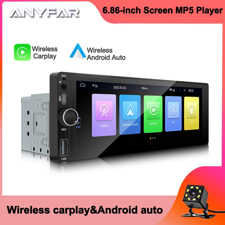 Обновите свою аудиосистему с помощью ANYFAR Универсального 6.86-дюймового 1-DIN Автомобильного Стерео, компактного, современного устройства, разработанного для установки в большинстве панелей приборов, обеспечивая реальное удобство в каждой поездке. 6.86-дюймовый HD сенсорный экран аккуратно помещается в шасси 1-DIN, предоставляя четкий, отзывчивый интерфейс без лишнего беспорядка.