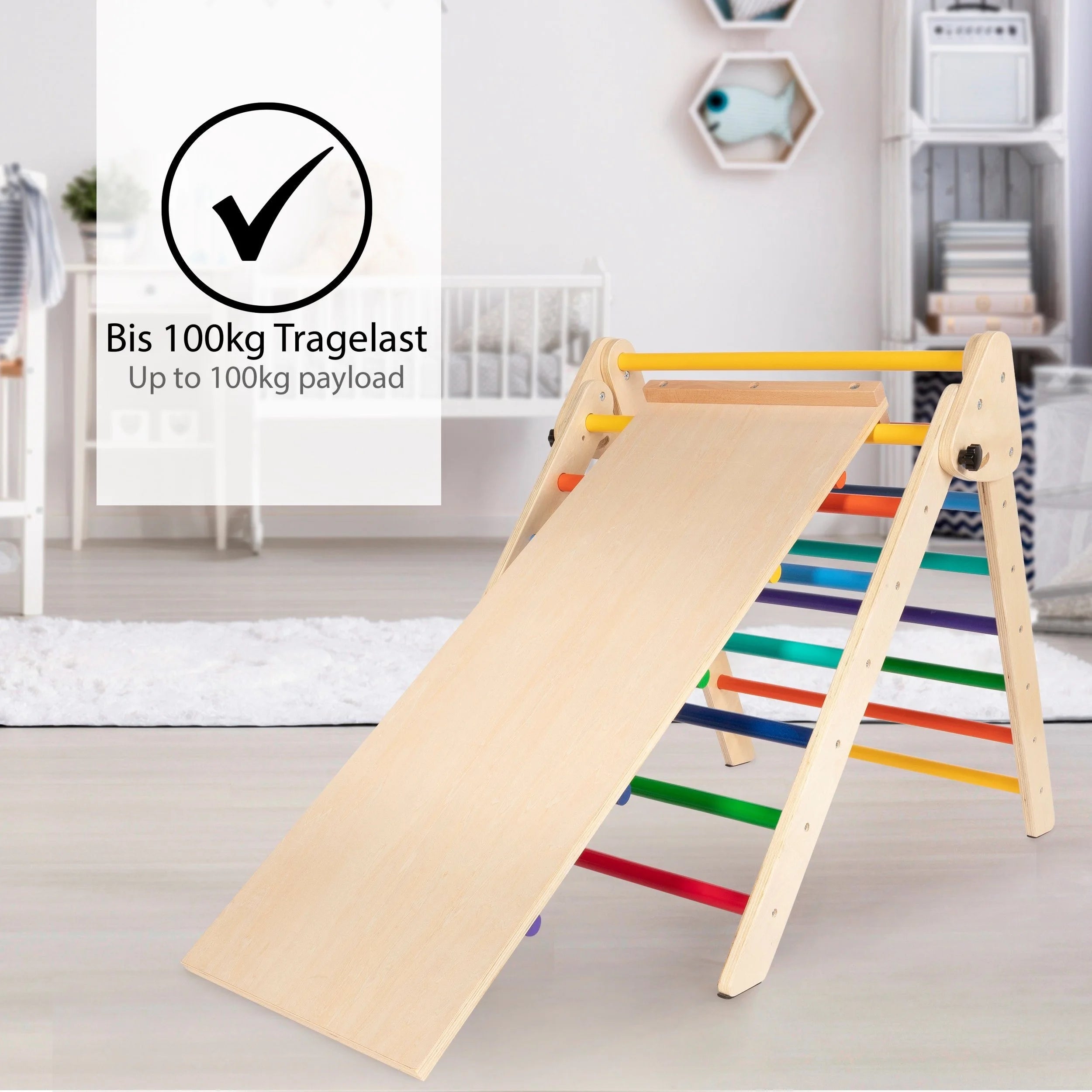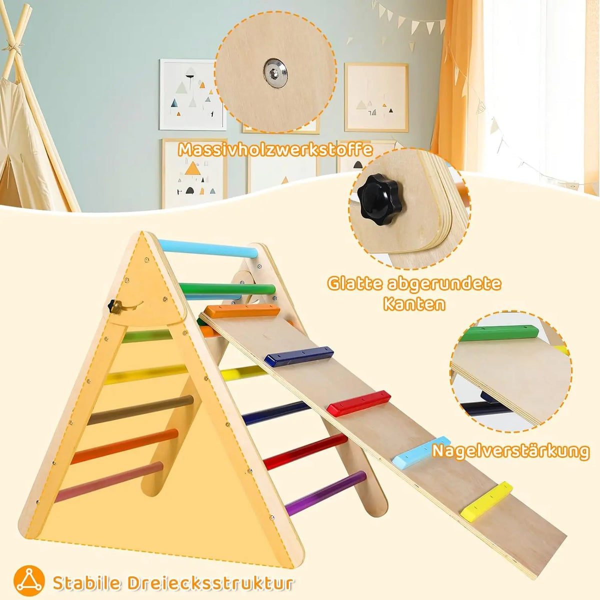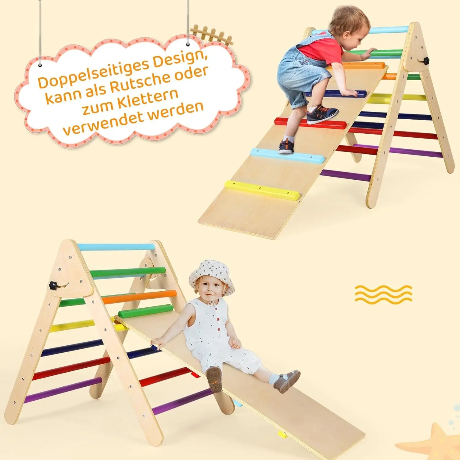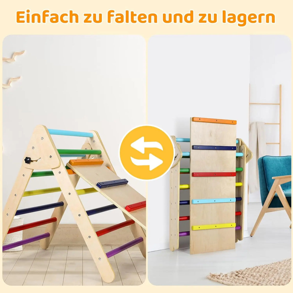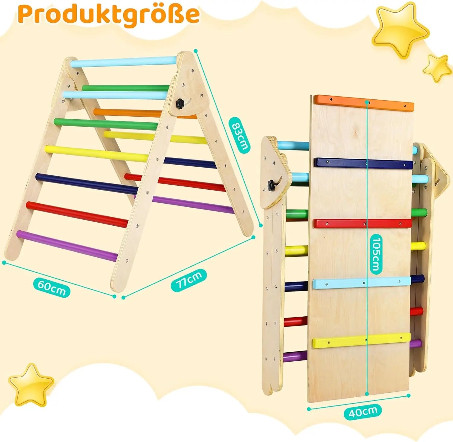 - Два режима игры в одном: переключайтесь между треугольником для лазания и 2-в-1 доской с горкой и пандусом для разнообразных испытаний.