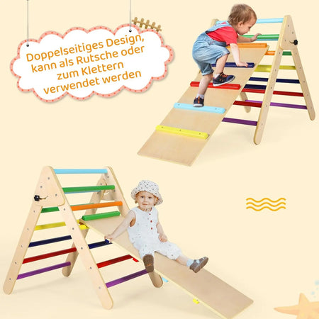 Деревянный набор для лазания Wooden Pine 2 в 1 для малышей — это универсальная игровая площадка для дома, созданная для вдохновения активной игры без экрана. Эта компактная система сочетает классический треугольник для лазания с 2-в-1 доской для лазания, которая включает горку и пандус, позволяя легко переключаться между лазанием и скольжением. Высоту и форму можно регулировать, чтобы набор рос вместе с вашим ребёнком, помогая улучшить равновесие, координацию и моторные навыки, при этом обеспечивая безопасность и увлекательность игры в помещении.