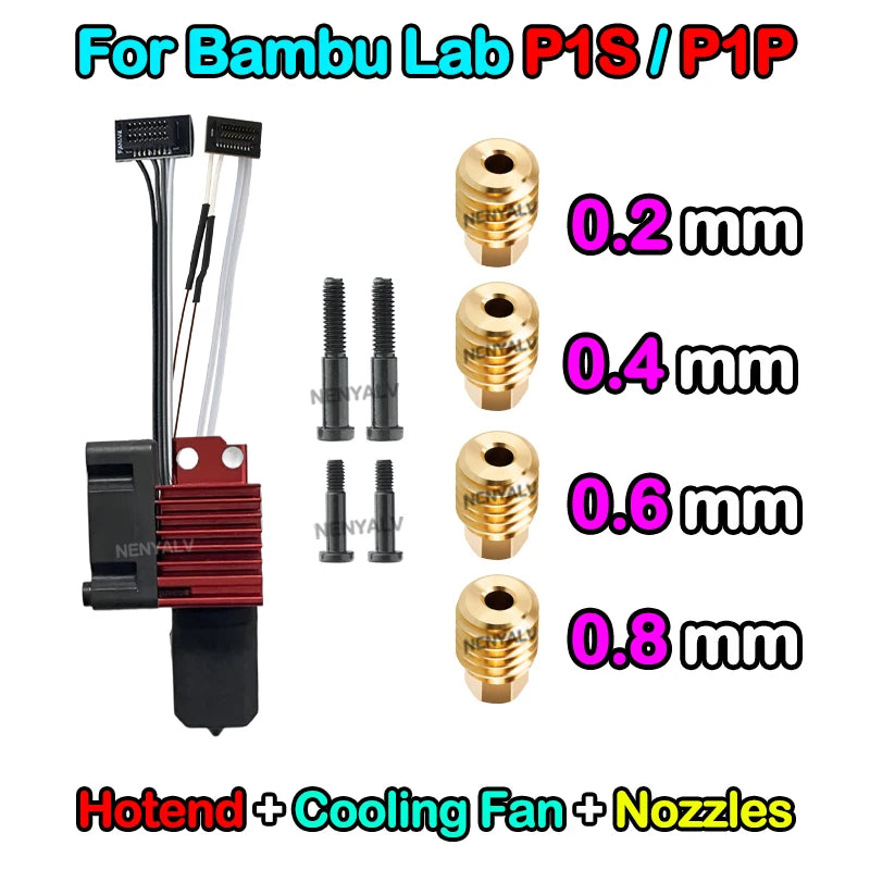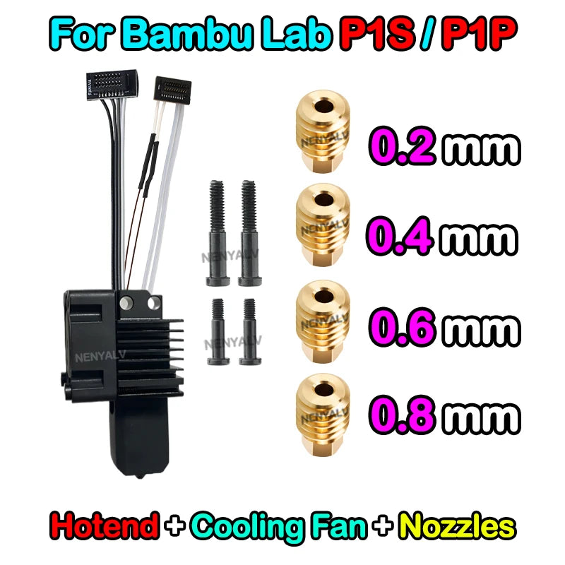 В комплект входит: Сборка металлического хотенда, встроенный вентилятор охлаждения, набор закаленных латунных сопел (0.2/0.4/0.6/0.8 мм), монтажное оборудование и основные инструкции по установке.