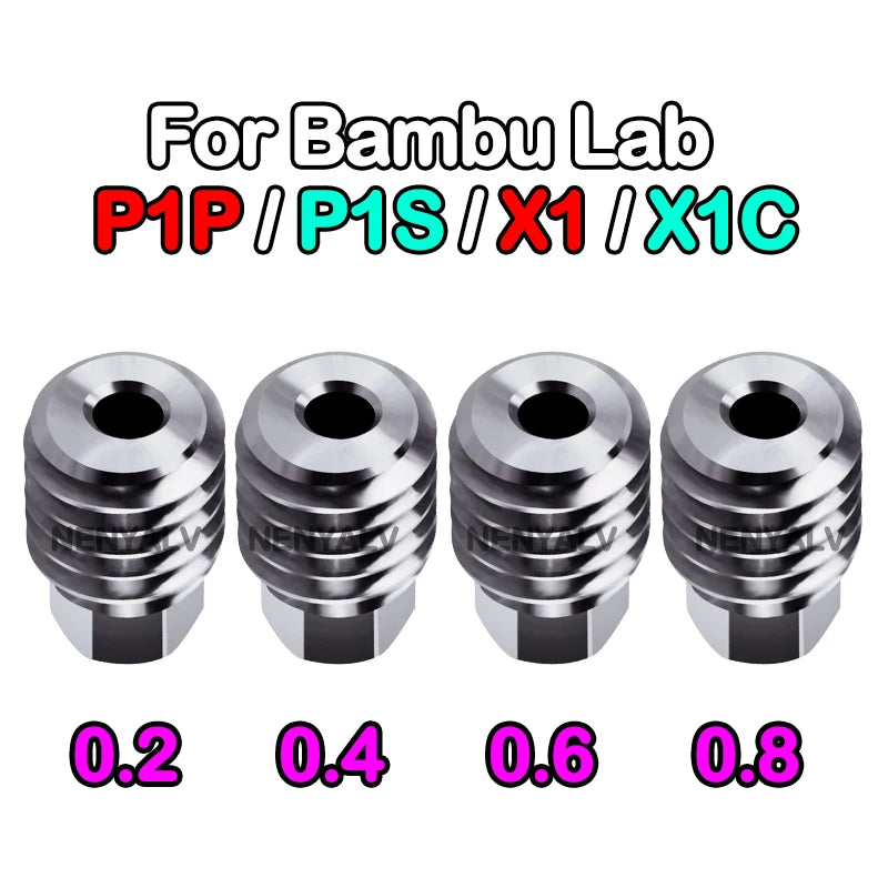- Точные размеры сопел: 0.2 / 0.4 / 0.6 / 0.8 мм для детализированных или быстрых печатей.
