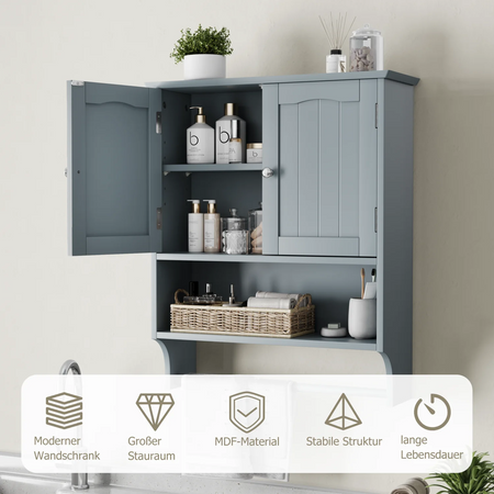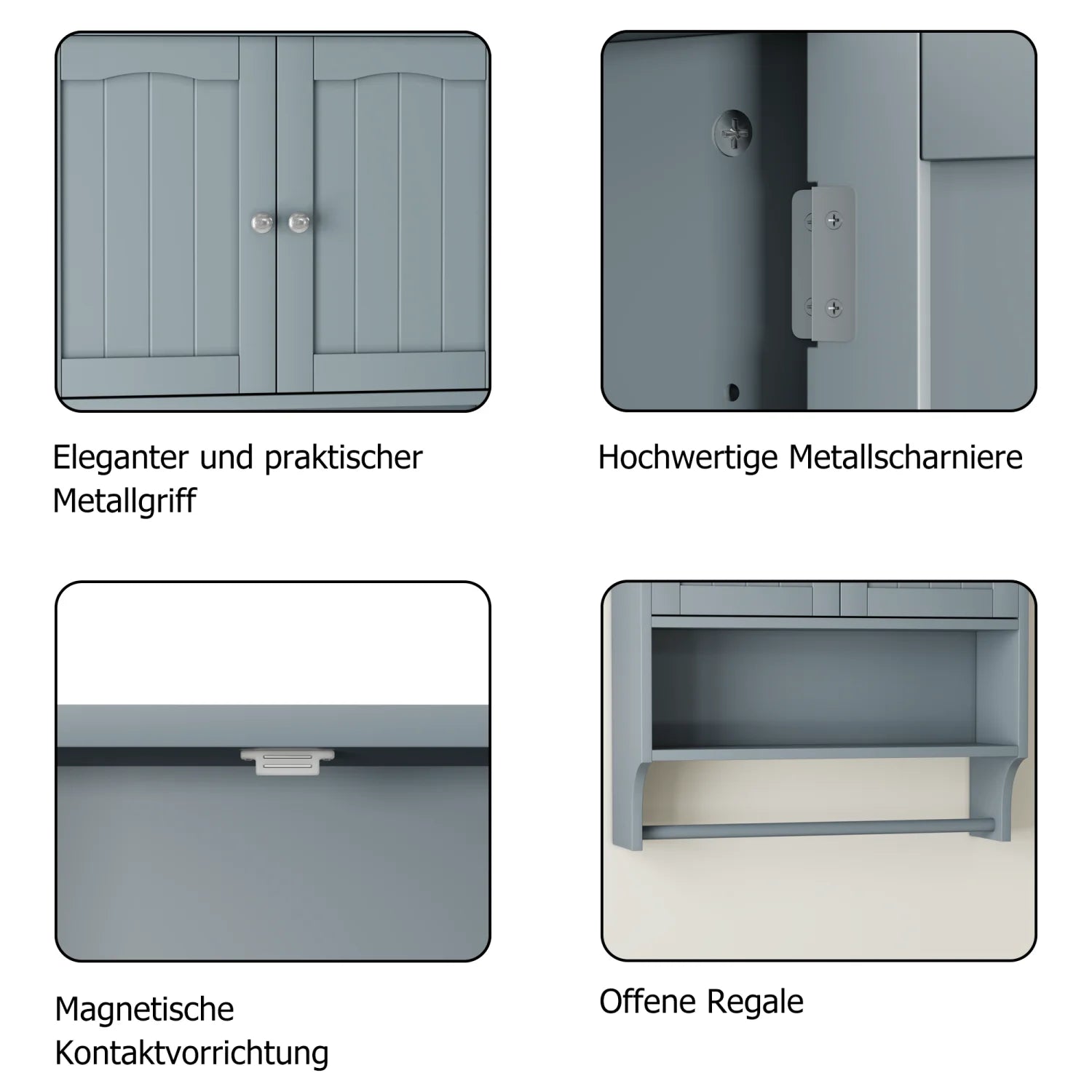 - 1 x Настенный шкаф для ванной с держателем для полотенец, 2 дверцами и открытыми полками