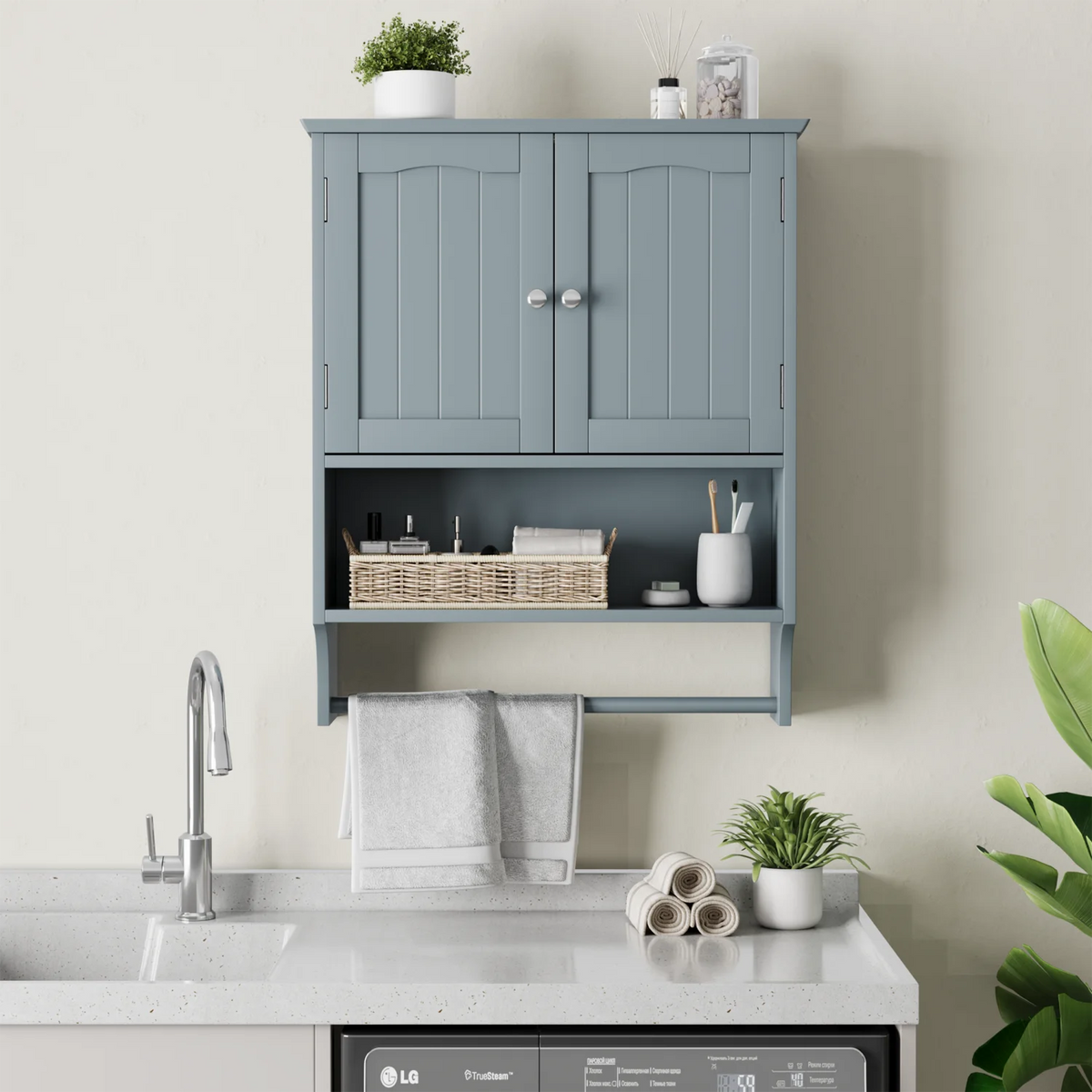Настенный шкаф для ванной с держателем для полотенец и 2 дверцами