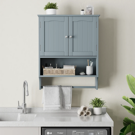 Обновите вашу ванную с настенным шкафом Jugacool с держателем для полотенец и двумя дверцами — стильным и экономящим пространство решением для хранения, созданным для аккуратного размещения ежедневных принадлежностей под рукой. Его настенный дизайн освобождает место на полу, делая маленькие ванные комнаты просторнее и уменьшая беспорядок на столешницах.