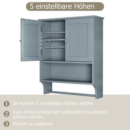 - Название продукта: Настенный шкаф для ванной с держателем для полотенец, настенная полка для ванной с 2 дверцами и открытыми полками, настенная полка для туалета, шкаф для медикаментов в ванной