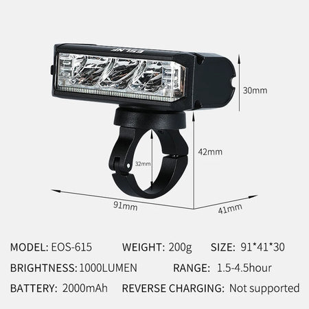 - 1 x Велосипедная фара (1700Lm, USB-зарядка)