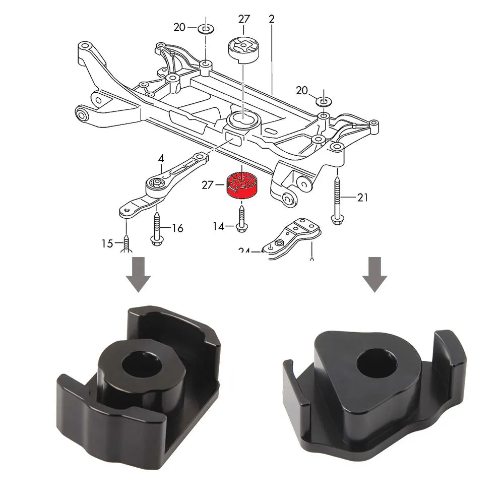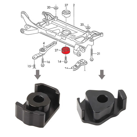 - 1x Вставка крепления Dog bone MQB (ZJ42) – для 14–19 VW Golf / GTI / Golf R (Mk7 MQB) (OEM 5Q0198037C)