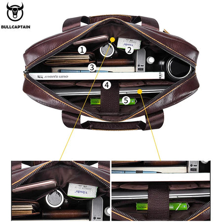 Сумка-мессенджер Bullcaptain из натуральной кожи для ноутбука 14 дюймов, мужская сумка, деловое портфолио для документов формата A4