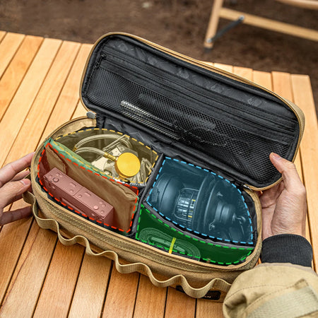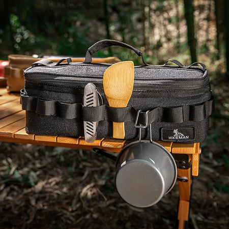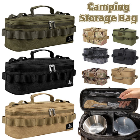 Сумка-органайзер для кемпинга MOJOYCE — это прочное решение для хранения с несколькими карманами, созданное для outdoor-приемов пищи. Изготовленная из полиэстера 600D, эта прочная сумка держит ваши кемпинговые принадлежности, чашки и компактную посуду аккуратно организованными и легкодоступными на кемпинге или пикнике.