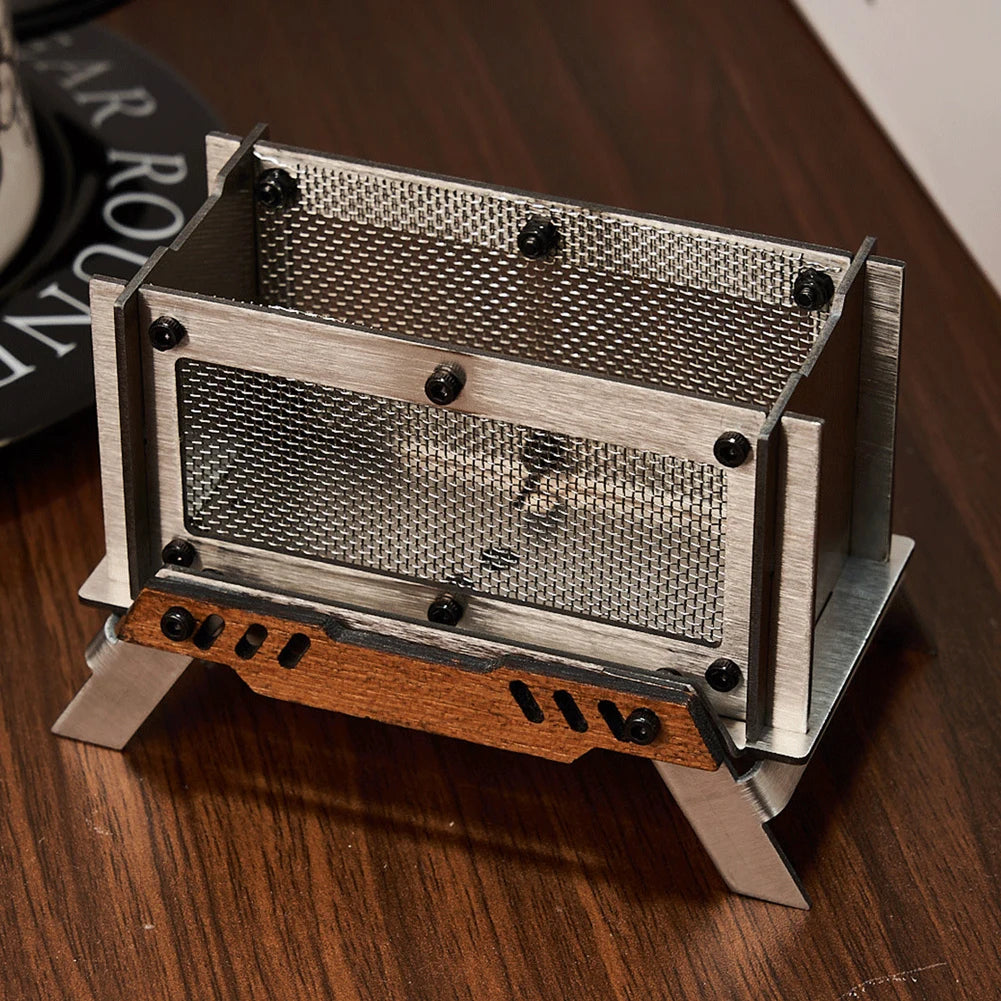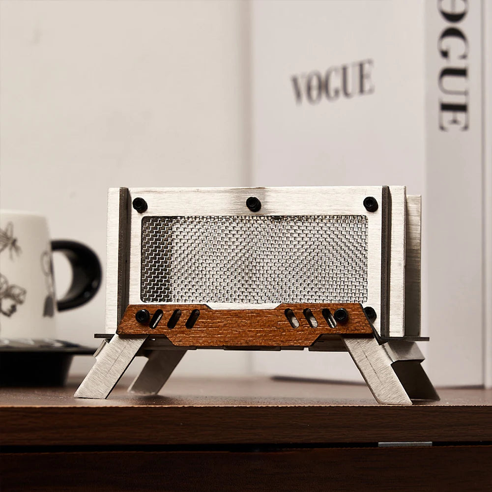 Миниатюрный угольный котелок для кемпинга из нержавеющей стали — это универсальное устройство двойного назначения, которое функционирует как успокаивающий диффузор аромата для дома и портативная мини-печь для создания атмосферы на улице. Изготовленный из прочной нержавеющей стали 304 с элементами массива дерева, этот компактный прибор приносит атмосферу костра в любое пространство — без необходимости в открытом огне или электричестве.