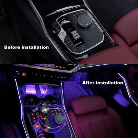 Почему этот апгрейд важен: хорошо освещенная центральная консоль не только выглядит премиально, но и помогает быстро находить элементы управления в условиях низкой освещенности. Встроенная лампа седла синхронизируется с атмосферным цветом вашего автомобиля, предлагая согласованный, высококачественный вид для BMW 3 Series (G20/G21, 2020–2024), 4 Series (G22/G23, 2021–2024), M3 (G80/G81, 2021–2024) и M4 (G82/G83, 2021–2024). В результате получается салон, который выглядит индивидуально и современно — особенно полезно для поздних вечерних поездок, фотогеничных интерьеров или просто для наслаждения атмосферой вашего автомобиля на ежедневной основе.