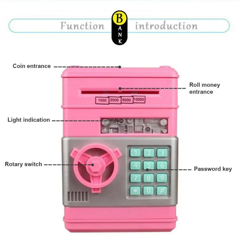 Электронная копилка с автоматическими функциями банкомата, замком с паролем, обучающая детская денежная сейф-копилка