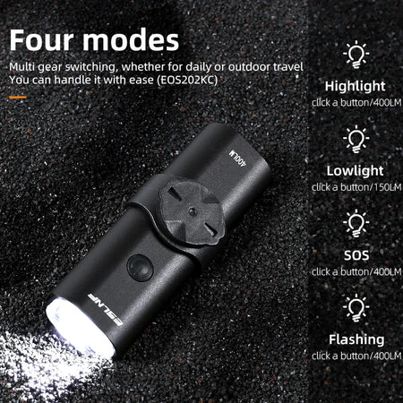 - Яркость 400 люмен с дальним освещением улучшает видимость на тёмных дорогах и тропах, повышая безопасность велосипедиста.