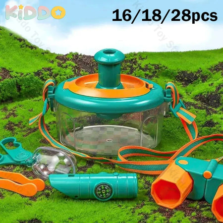 - 18 шт.: коробка для насекомых ×1, карточка ×8, зажим ×1, фиксирующее кольцо ×3, телескоп ×1, перископ ×1, пинцет ×1, увеличитель ×1, многофункциональный свисток ×1