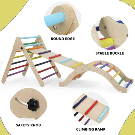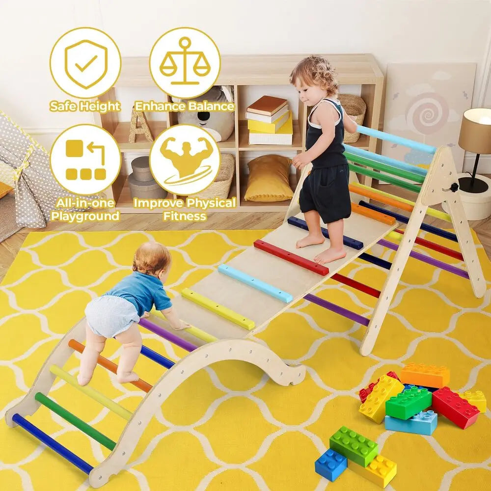 Представляем складной деревянный игровой набор «Треугольник для лазания» с пандусом — универсальное игровое решение в стиле Монтессори, которое растёт вместе с вашим ребёнком. Изготовлен из берёзы и сосны, этот красочный 3-в-1 лазательный комплекс сочетает горку, камни для лазания и гладкую полированную поверхность, чтобы пробудить воображение и поощрить самостоятельную игру. Его складной дизайн облегчает хранение, позволяя превратить любой уголок в безопасную и увлекательную игровую площадку как в помещении, так и на улице. Создан для долговечности, он поддерживает активных малышей с помощью прочной треугольной рамы и надёжной базы, а закруглённые края и нетоксичные покрытия обеспечивают безопасность и удовольствие от игры.