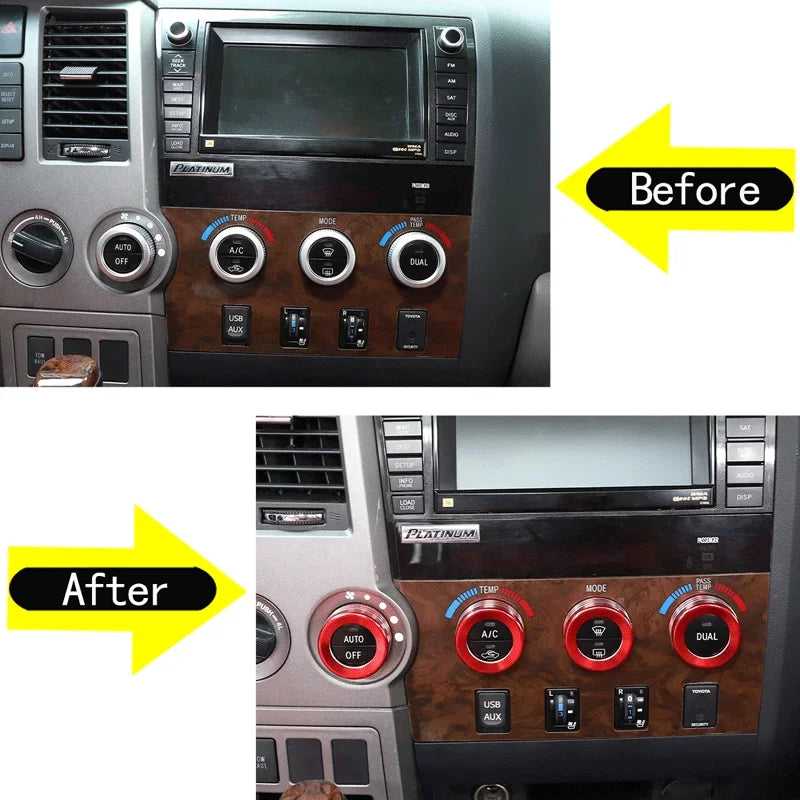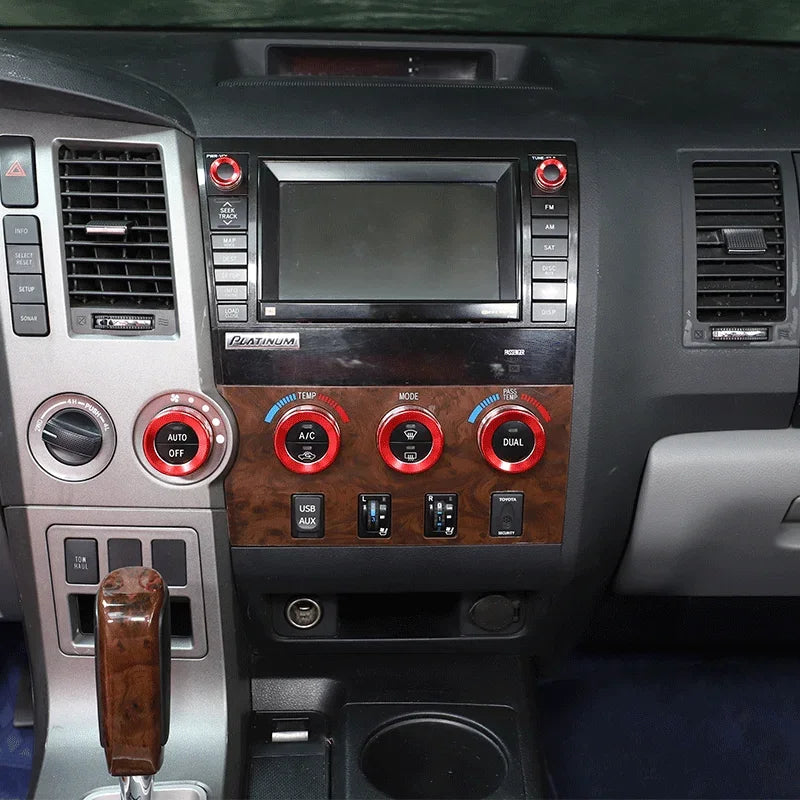 Обновите интерьер вашего Toyota Tundra 2007-2013 с помощью кольца для ручки из алюминиевого сплава красного/серебристого цвета. Этот высококачественный автомобильный аксессуар защищает ручку регулировки громкости от царапин и ежедневного износа, придавая приборной панели смелый, премиальный вид. Изготовлен из прочного алюминиевого сплава и отделан яркими красным и серебристым цветами, он дополняет широкий спектр цветов и стилей интерьера. Кольцо быстро устанавливается с помощью предварительно нанесённой автомобильной клейкой ленты — без инструментов. Изготовлено на заводе с сертификатом ISO9001 и разработано для точной посадки на модели Toyota Tundra 2007-2013 годов, сочетая стильные детали с практичной защитой. Все электронное и механическое оборудование, устройства и машины, продаваемые InterCyprus в страны ЕС, сертифицированы CE и имеют двухлетнюю гарантию. Обеспечиваем качество и надёжное обслуживание с 2002 года на intercyprus.com.