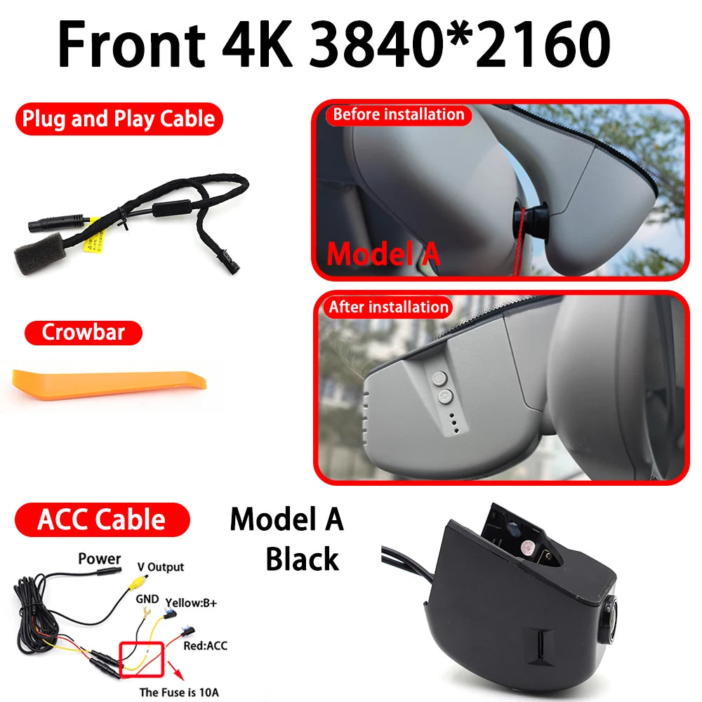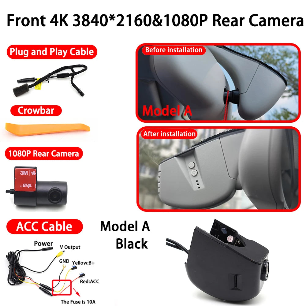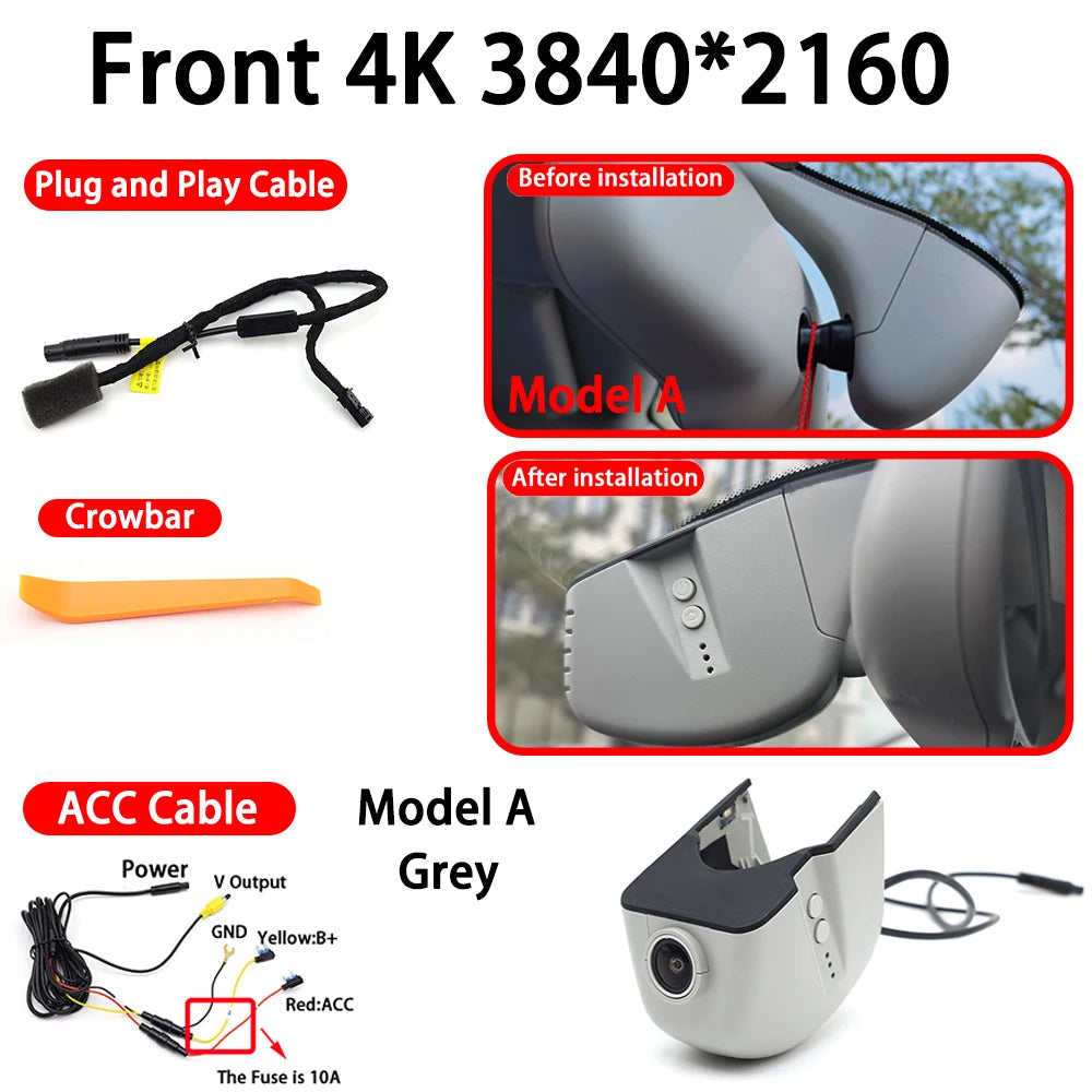 Видеорегистратор с передними и задними камерами и WiFi UHD 2160P Подключение и работа без настройки для Audi A8