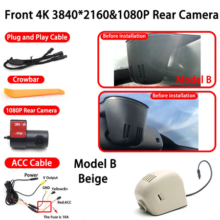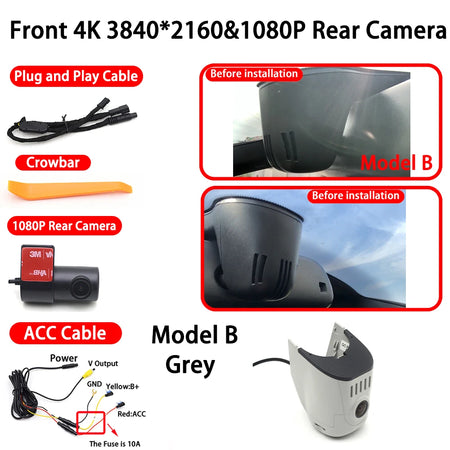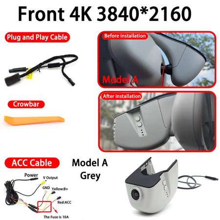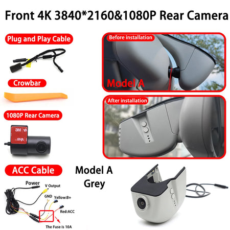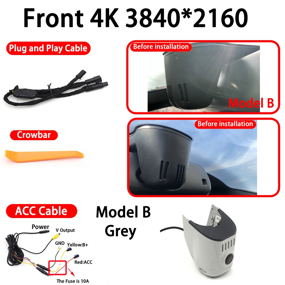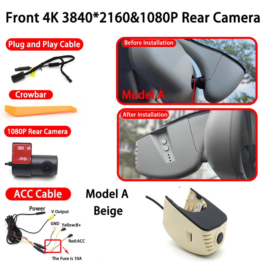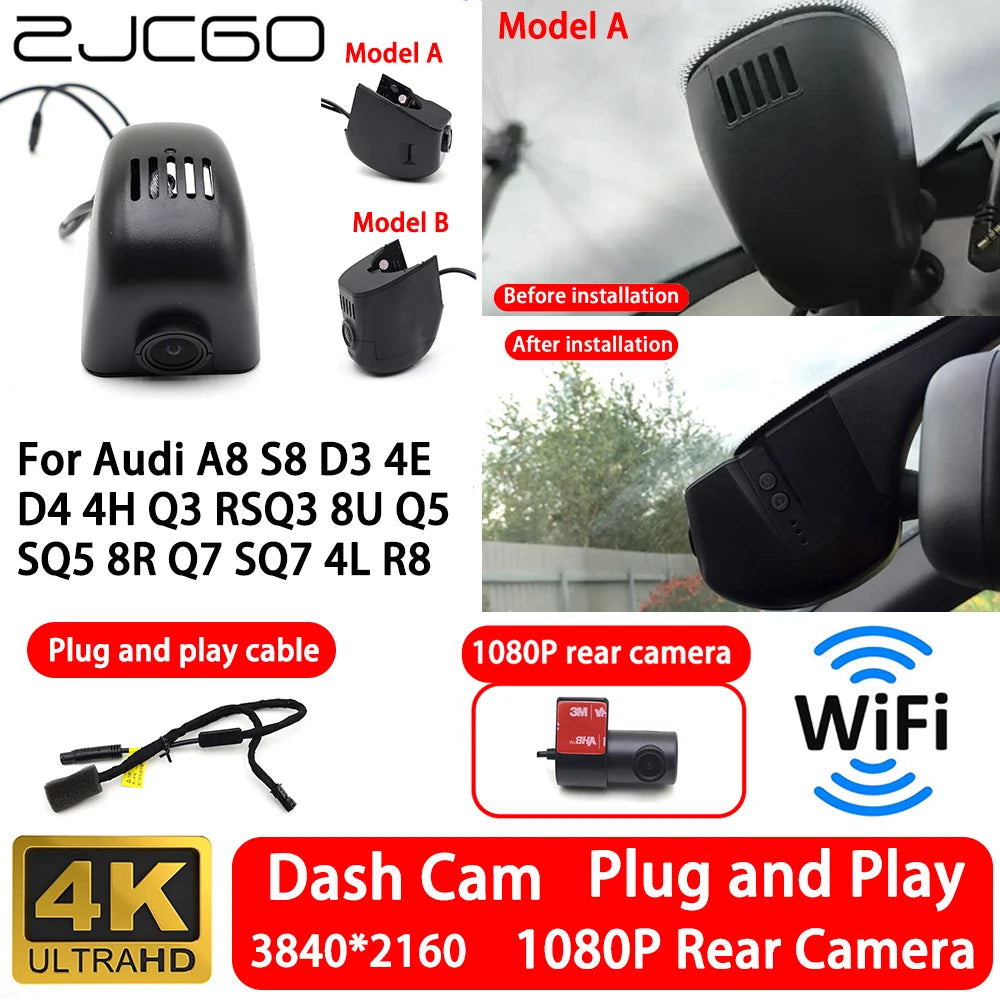 Видеорегистратор с передними и задними камерами и WiFi UHD 2160P Подключение и работа без настройки для Audi A8