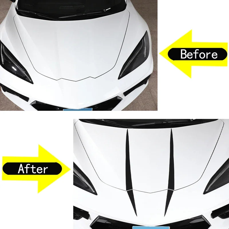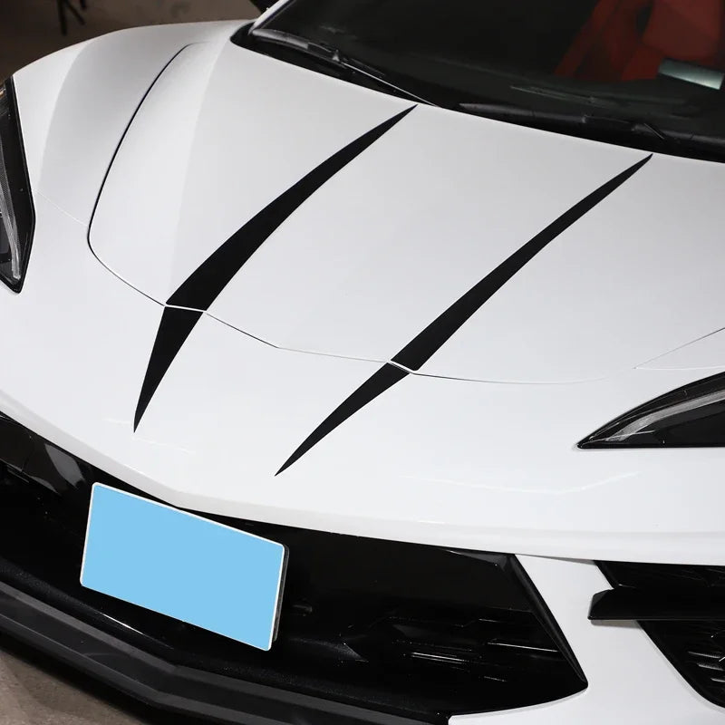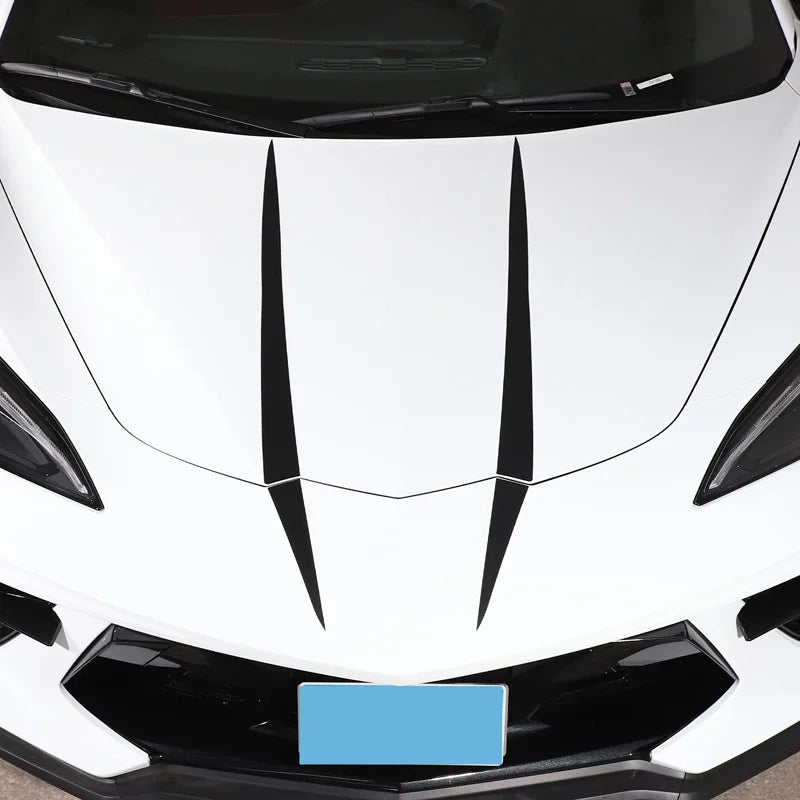 - Черная наклейка из ПВХ для передней крышки двигателя автомобиля Chevrolet Corvette C8 (2020–2023)