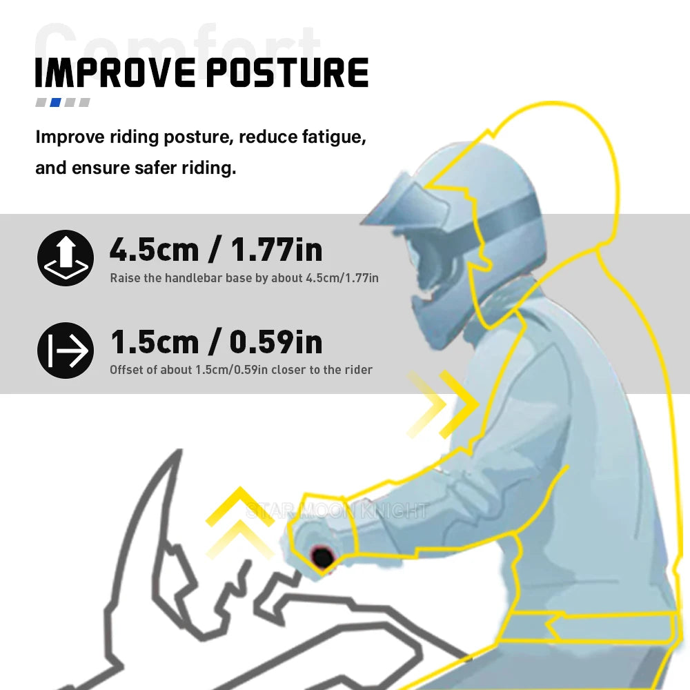- Повышает комфорт при езде на дальние расстояния или при стоянии благодаря более высокому, эргономичному положению руля.