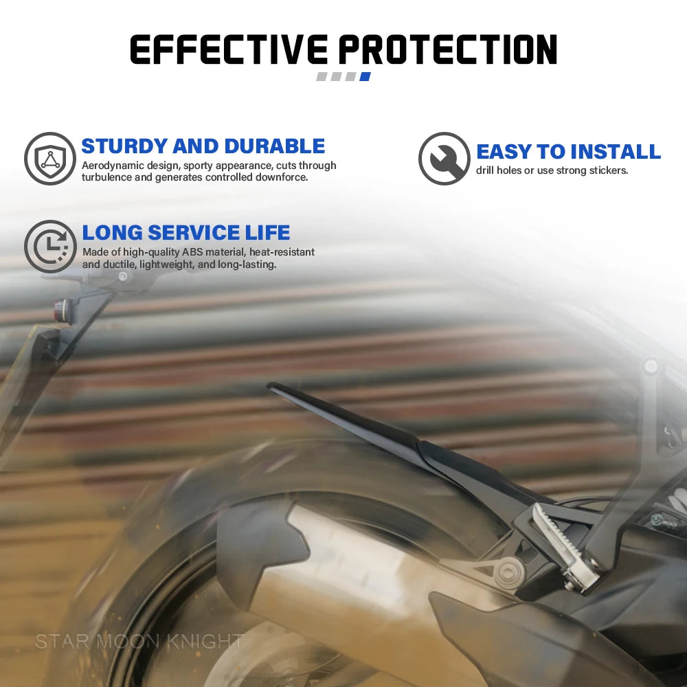 - 1 x задний удлинитель крыла из ABS-пластика (17,5 см / 6,89 дюйма), совместимый с Tiger Sport 660 (2022-) и Tiger Sport 800 (2025-).