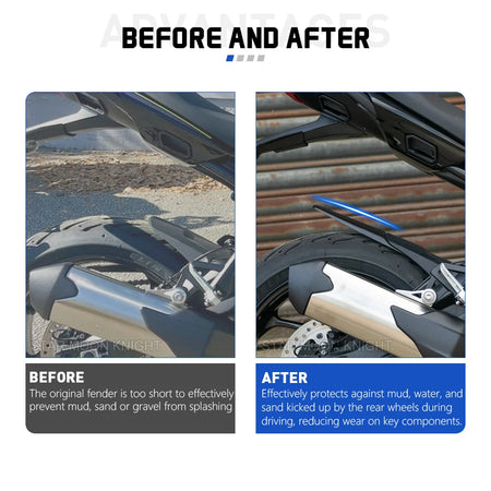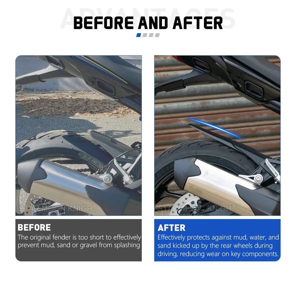 - Расширенное покрытие заднего крыла помогает сохранять ваш мотоцикл чище на грязных или песчаных дорогах.