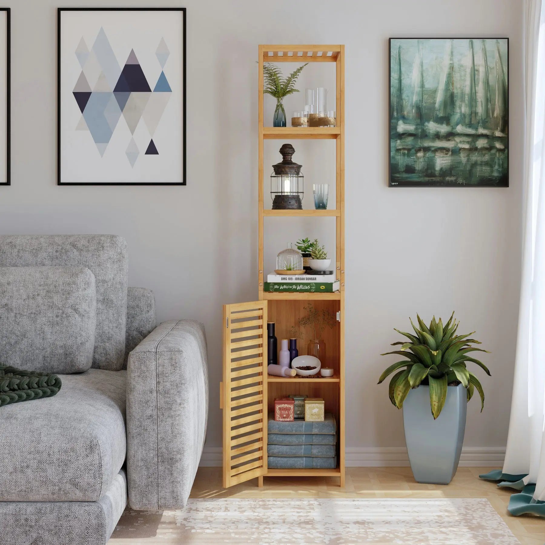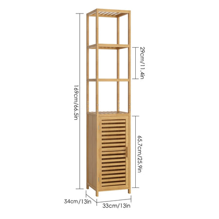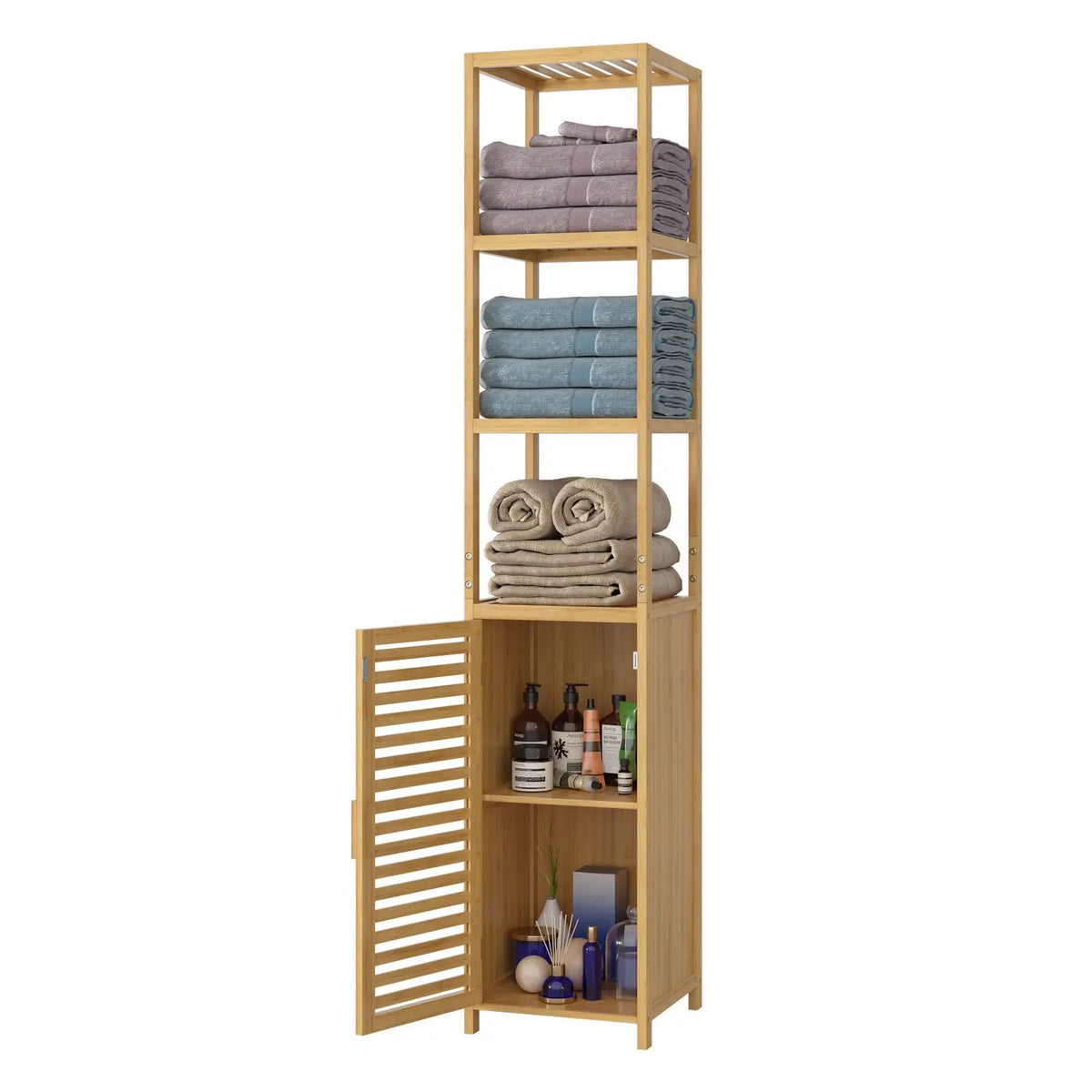 Откройте для себя высокий узкий шкаф для хранения в ванной комнате Getone Bamboo Tall Slim, высотой 169 см, разработанный для компактного размещения в узких ванных комнатах и обеспечивающий щедрое пространство для организации. Изготовленный из 100% натурального бамбука, этот экологичный шкаф сочетает современный стиль с долговечностью и влагостойкостью — идеально подходит для ванных комнат, кухонь или хозяйственных помещений.