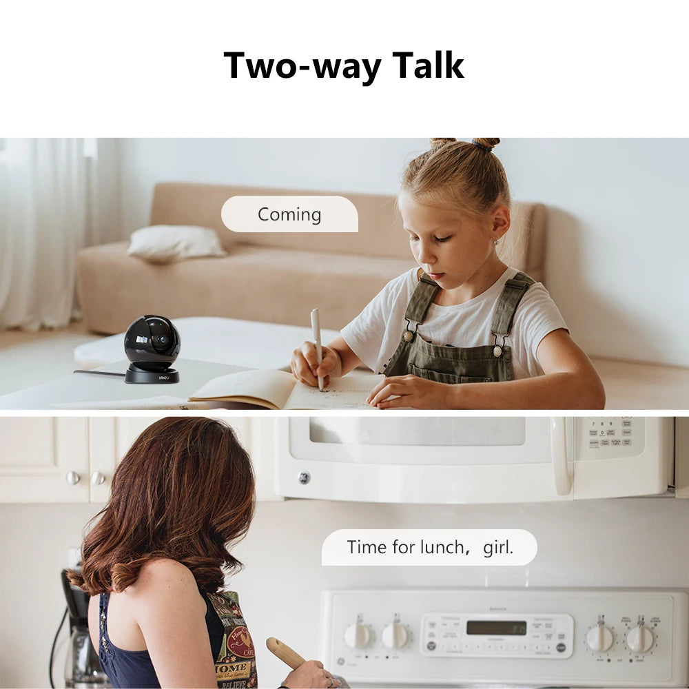 С двусторонней аудиосвязью вы можете общаться напрямую с членами семьи или питомцами, а панорамный обзор на 360 градусов не оставляет слепых зон. Независимо от времени суток, наслаждайтесь кристально чистыми изображениями в 3K HD, обеспеченными технологией IMOU SENSE™MP.