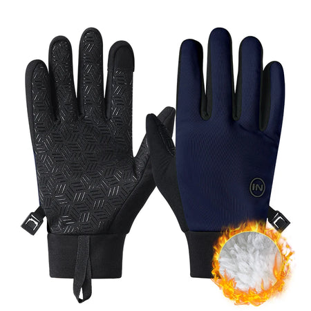 Ветрозащитные флисовые велосипедные перчатки для мужчин, теплые полноразмерные перчатки с сенсорным экраном, полиэстер-спандекс, противоскользящий захват